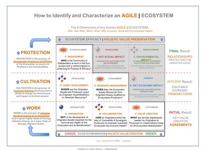 AGILE methodology incorporates a system of frameworks that organize the three archetypes into a specific pattern of relationships that collectively transform the environment of a given ecosystem. Thus, AGILE methodology can be used to support the growth, cultivation, preservation, and protection of natural and human ecosystems, to foster robust solutions to the world’s most challenging problems.